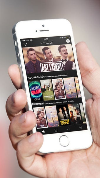 Vertical adalah aplikasi seluler gratis yang dikembangkan untuk platform iOS dan Android. Dirancang untuk menampilkan bakat dan konten asli, Vertical penuh dengan video unik dari berbagai genre, termasuk humor. Seperti YouTube, kualitas video dapat dipilih agar sesuai dengan spesifikasi ponsel cerdas atau tablet Anda dan pemutaran video dapat dilanjutkan setelah keluar dari aplikasi dan membuka kembali. Video juga dapat dibagikan dengan mudah melalui sejumlah jaringan media sosial, termasuk Twitter dan Facebook. Berlangganan artis favorit Anda sekarang dan nikmati konten yang diposting secara teratur.